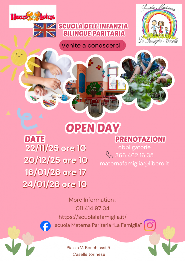 La peculiarità della Scuola Materna “La Famiglia” consiste nel proporre e curare l’apprendimento della lingua inglese fin dalla più tenera età.